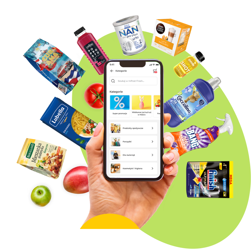 Gwarantujemy dostawę w całej Polsce pod drzwi lub przez Paczkomat® – to Ty decydujesz, gdzie mamy dostarczyć zamówienie. W InPost Fresh znajdziesz wszystkie produkty z Twojej codziennej listy zakupów! Makarony, kawę, dania gotowe, żywność ekologiczną i wegańską, produkty dla dzieci, artykuły dla zwierząt, kosmetyki oraz środki czystości. Wybieraj spośród ponad 30 000 produktów w najlepszych cenach z lokalnych sklepów oraz w wybranych miastach z oferty sieci handlowych Carrefour (Warszawa, Kraków, Katowice, Sosnowiec, Mysłowice, Czeladź) i Makro (Warszawa, Łódź! Czekają na Ciebie atrakcyjne rabaty i okazje, które podsunie Ci sama aplikacja! Wybierz to, czego potrzebujesz, a my… zajmiemy się resztą!